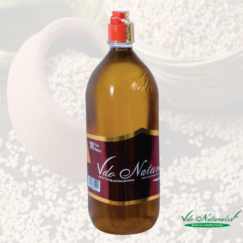 Vdo Naturalss Cold Pressed Gingelly oil is the Queen of all oils. It is extracted by adding jaggery/Palm Jaggery from marachekku. It helps to control the blood pressure level. It also reduces the bad cholesterol and help to have a good heart health. Vdo Cold pressed Gingelly oil is loaded with natural nutrients and enriched with the goodness of Vitamin E. A good source of omega 6 fatty acids and many nutrients like zinc, copper, magnesium, calcium and iron. Rich, nutty flavour-ideal for cooking, frying and marinating salads. Lowers cholesterol and regulates blood pressure. Keeps your skin healthy and supple. Best for cooking, oilpulling and oil bath.